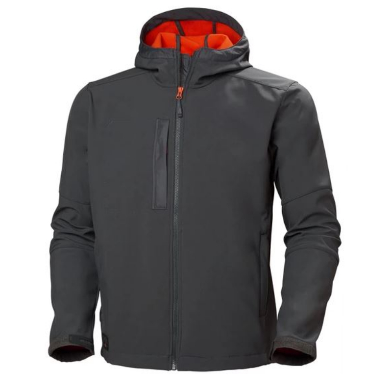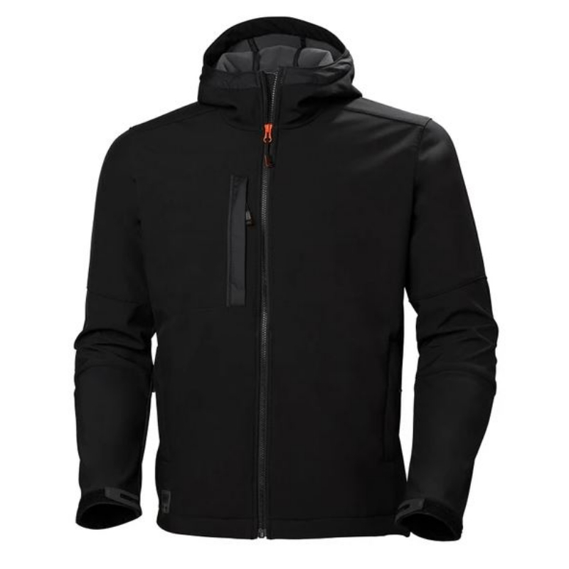 The Kensington Hooded softshell jacket is an excellent choice for the tradesmen who values ease and practicality. The high collar has a brushed fleece inside and the back is extended for improved comfort. It has multiple conveniently placed YKK® zipper pockets and the chest pocket is outfitted with a cord hole for headphones that alleviates any unnecessary tangling.