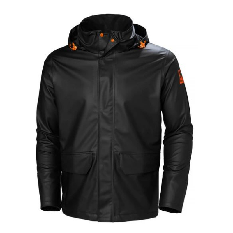 The Gale Rain Jacket sets a new standard in rain gear built for workers, delivering waterproof and durable protection with a stretch fabric to allow for easy movement. Packed with features to make your day easier on the job, the Gale features an adjustable, packable hood along with a drop back for extended coverage, the neoprene cuffs prevent water from traveling down the arm as well. The zippered front features a double storm flap to keep water out and also has a hidden zippered chest pocket with a headphone hole. The phthalate free fabrics ensures low environmental impact while at the same time keeping you dry no matter the weather.