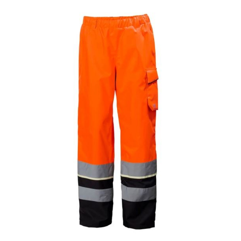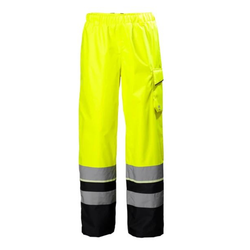 The Class 2 version of the UC-ME SHELL PANT features full-length high-visibility fabric, along with wide reflective stripes. Work pants stay in place with professional-grade elastic waistband. Compatibility with 79550 HH WW SUSPENDERS 2.0 offers more security and freedom of movement. Boots stay covered and protected with the knee-high zipper, storm flap, and fastener closure. Helpful thigh pocket safeguards contents with protective flap and fastener, while a ruler opening and an ID card loop are welcome workwear additions.