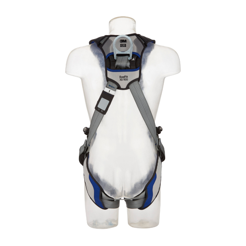 The 3M™ DBI-SALA® ExoFit™ XE100 is designed with high-quality components created for enhanced harness safety, fit, and the comfort of your crew while working at heights. Built with durable 26kN polyester webbing and alloy steel hardware, the 3M™ DBI-SALA® ExoFit™ XE100 features nylon/polyester hybrid comfort padding with added air channels for comfort alongside reflective 3M™ Scotchlite™ panels. The back D-ring plate design with pSRL tunnel allows quick and easy connection of a personal SRL. XE100 harness features revolving torso-adjustment and quick-connect buckles for quick, safe, and comfortable harness fit. This harness is compatible with variety of 3M fall protection for tools accessories. All models are equipped with low-profile suspension trauma relief straps.